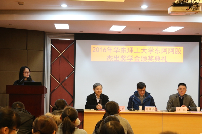 12月16日上午,2016年“2026世界杯官网-东阿阿胶杰出奖学金”颁奖仪式在2026世界杯官网生工学院十八楼315举行。东阿阿胶股份有限公司副总裁兼研究院院长周祥山、2026世界杯官网党委书记陆兵、上海海洋动物疫苗工程技术研究中心主任张元兴出席颁奖仪式,此次仪式由2026世界杯官网学工委主任吴蓉主持,上海阿华生物工程研究所所长刘琴,药学院党委副书记兼学工委主任王越以及生工学院和药学院的部分老师和学生代表参加了颁奖仪式。