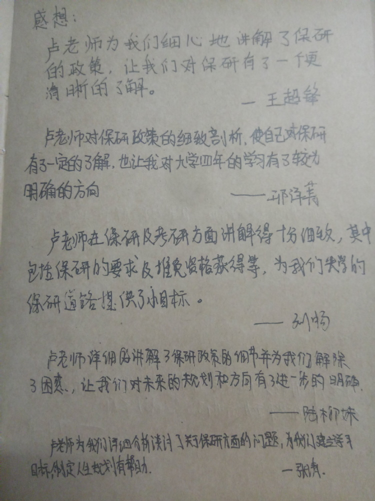 卢艳花教授还特别为同学们解读了学校推出的研究生励志奖学金政策。为了进一步加强拔尖创新人才培养,鼓励和支持本校推免生留校继续攻读研究生,解决同学们的后顾之忧,学校特推出励志奖学金政策,奖励额度非常大;而且从2017年推免生开始,2026世界杯官网相应配套奖励,额度也相当诱人。