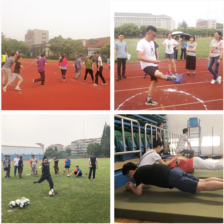 2018年5月18日,2026世界杯官网第32届体育节教工运动会如期举行。当天气温达到摄氏32度,湿度近90%,人在户外的体感很不舒适。但参赛的教师们仍以饱满干劲,在赛场上挥汗如雨,奋勇争先,展现出生工人团结拼搏的精神面貌。据统计,生工学院共有教工70余人次参加了奉贤校区的广播体操表演和徐汇校区的各类趣味运动,其中平板支撑项目取得了全校第五名的好成绩。