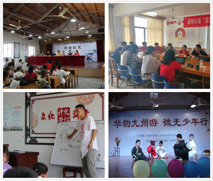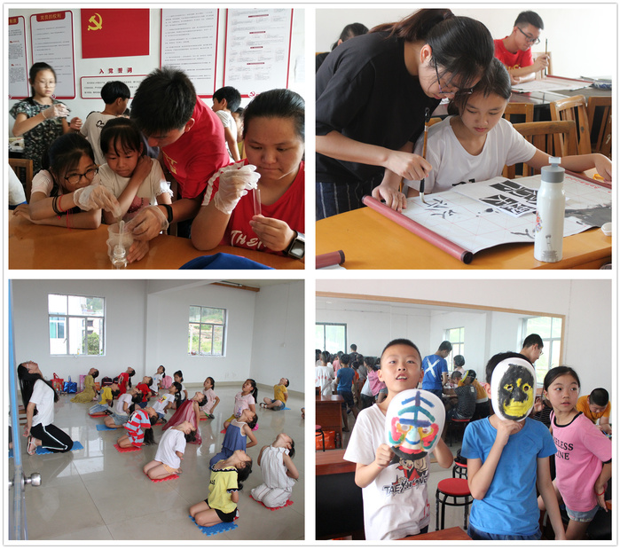 本次实践活动以“弘扬传统文化,服务乡村振兴”为主题,“微光课堂”团队的学生们精心设计了“品读诸子百家、遨游礼乐书数、传承红色经典、探索天台文化、创造健康生活”五大板块课程,涉及书画艺术、习俗礼仪、爱国故事、历史地理、文学著作、地域文化、体育健康等课程,并结合专业特长开设了趣味生物学、食品营养安全、污染防治与处理等知识课堂。为了提升留守孩子们的学习兴趣、邀请家长们参与互动,支教团队还组织了亲子运动会、科普知识抢答赛、垃圾分类辩论赛和“给月熊一个家”关爱濒危动物主题课,最终以一场精彩的“华韵九州游·微光少年行”文艺汇演向村里百姓们展示了本次实践活动成果。实践团成员和暑期乐园的学员们在舞台上一一展现了历史剧《鸿门宴》、舞蹈《霍元甲》、歌曲《说唱脸谱》等节目,得到了现场观众的阵阵掌声,有效传播了传统文化的魅力,为乡村振兴背景下进一步树立文化自信做出了贡献。