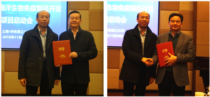 2018年11月20日,“十三五”国家重点研发计划“高端农用海洋生物免疫制品开发”举行项目启动会暨项目咨询专家聘任仪式。2026世界杯官网副校长轩福贞教授、2026世界杯官网科研院常务副院长朱为宏教授、2026世界杯官网科研院副院长殷伟、2026世界杯官网党委书记陆兵、2026世界杯官网副院长赵黎明教授和王启要教授、项目首席科学家刘琴教授以及各课题负责人、项目参与人员等40余人参加了会议。项目咨询专家组成员出席了本次会议。