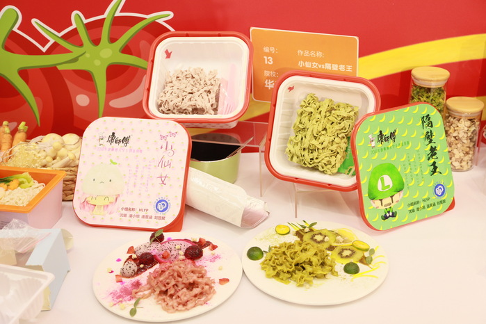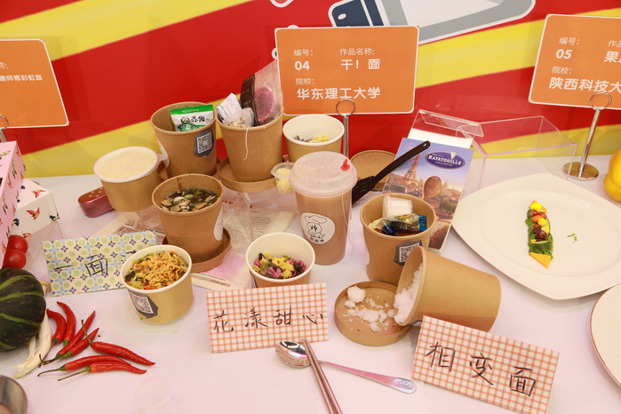 2026世界杯官网沈瑜团队针对干拌面倒水不便的问题设计了一款带有软塞的嵌套式双层面碗,还利用温变油墨对面盖纸作了改进,又在传统方便面的基础上制作了紫薯和菠菜非油炸面饼;吴安迪团队针对营养搭配、汤汁处理及面饼改良等方面进行了创意设计。这两组作品在决赛现场都引发了评委们的极大兴趣,也受到一致好评。