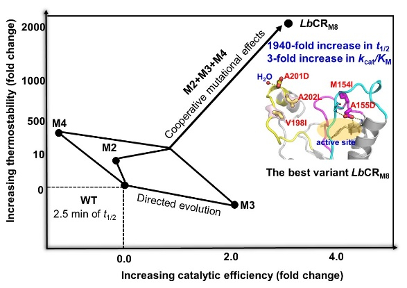课题组前期研究结果表明,来源于短乳杆菌的羰基还原酶LbCR,在酶促合成阿托伐他汀前体6-氰基-3R,5R-二羟基己酸叔丁酯(ATS-7)中表现出优异的立体选择性,但是在工业应用推广中还存在热稳定性较差和活性不足等瓶颈问题。