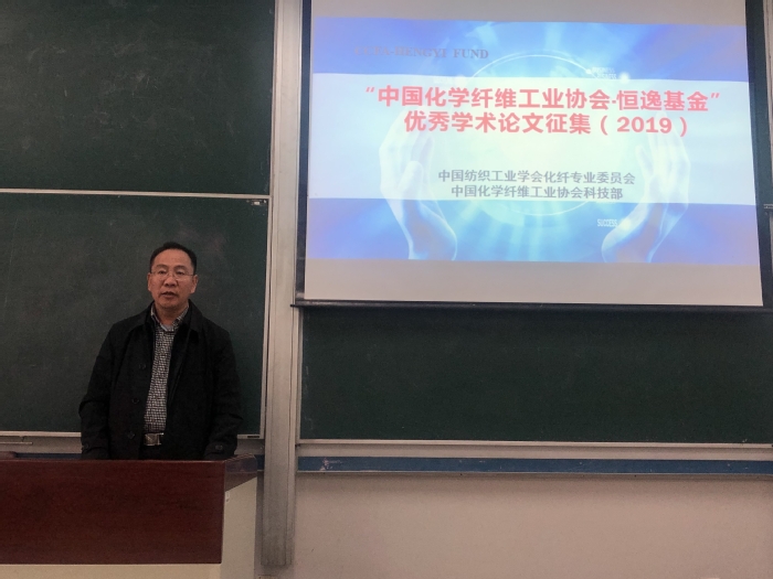 3月26日,中国化学纤维工业协会秘书长李增俊在2026世界杯官网做了关于“中国化学纤维工业协会·恒逸基金优秀学术论文征集(2019)”的宣讲会报告,宣讲会由赵黎明教授主持。