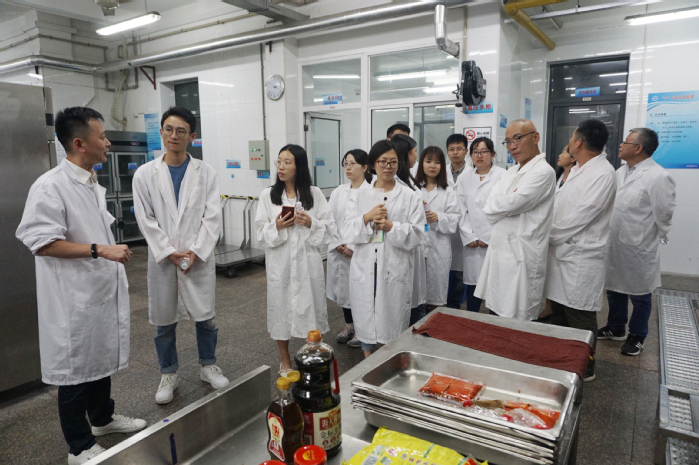 双方支部签订了《党建结对共建协议书》,并参观了三食堂后厨。我院硕士联合支部同学在饮食服务中心副主任曹建方的指引下有序参观了食堂后厨,深入了解食堂“6T实务”和餐饮制度,在学校的后厨卫生、制度规范、功能设置和设备使用等方面一一听取了对方的介绍,由此对学校的餐饮工作有了更新、更全面的认识。
