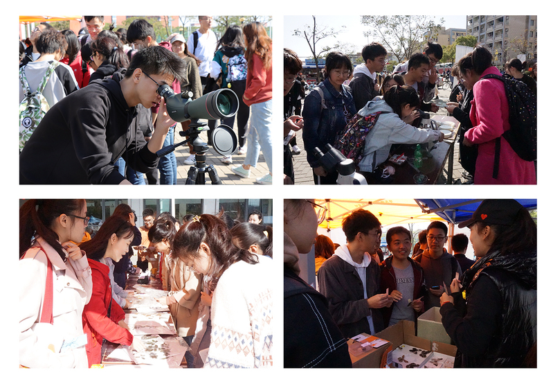 细致解说,交流探讨。采自天目山的各种动植物标本以及土壤微生物的制片一齐被带到活动现场,同学们争当解说员,将标本的制作、动植物的分类及特征、水体的取样与观察、鸟类的观察与鉴定等各方面的体验与同学们分享,交流场面热闹非凡。天目山的草木花开、大自然的玮丽瑰奇不仅走入了每位生科同学的世界里,更为每一位热爱自然的师生开拓了灿烂的认知疆域。
