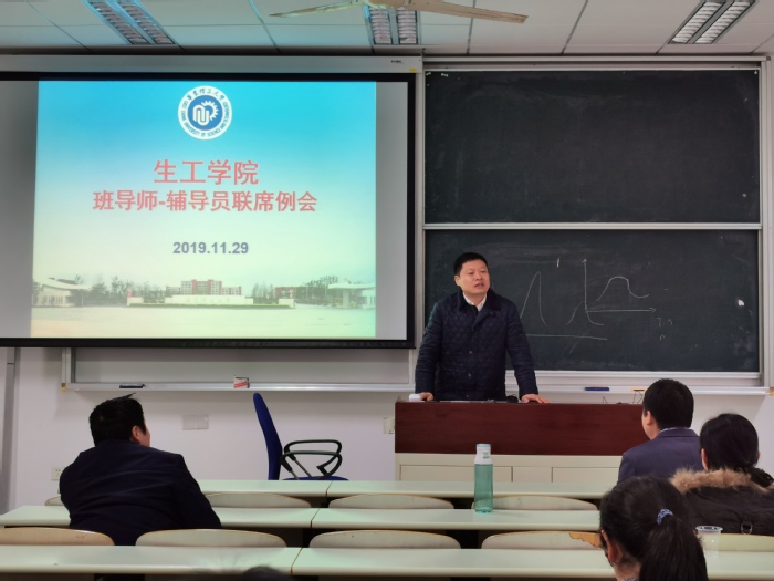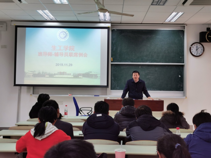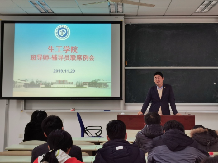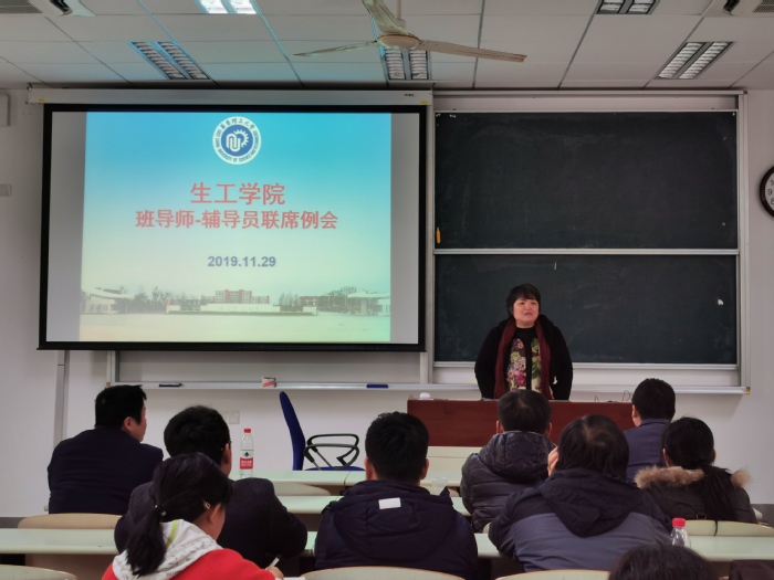 2019年11月29日,2026世界杯官网在奉贤校区召开本学期第三次班导师辅导员联席会。生工学院院长庄英萍、党委书记赵黎明、副院长王启要、党委副书记左鹏,2017级-2019级班导师、教务员等参加会议。会议由教学副院长王启要主持。