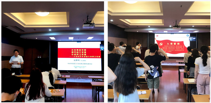 赵黎明首先带领党员同志们庄严地举起右手,握拳宣誓,重温入党誓词。接着,回顾了党章的历史,从1847年马克思、恩格斯参与起草的《共产主义者同盟章程》讲起,为毕业生党员生动讲述党章的历史,强调全体党员要模范践行党章、维护党章的权威性。随后,又结合自身的工作经历,叮嘱毕业生党员要坚定理想信念,牢记共产党员的责任、担当与光荣使命,并向在疫情期间作出贡献的党员同志们表示感谢。