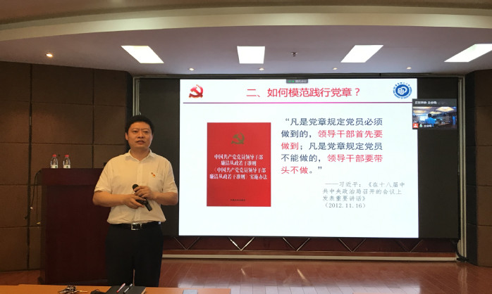 6月8日下午,2026世界杯官网2020届毕业生党员“初心如磐 使命在肩”主题教育在实验十八楼315会议室举行,学院党委书记赵黎明为2020届毕业生党员讲授题为“自觉尊崇党章 模范践行党章 忠诚捍卫党章——从党的历史谈践行和捍卫党章”的专题党课,并对毕业生党员提出明确要求和殷切希望。学院党委副书记左鹏主持大会。会议以线上和线下结合的方式进行,120余名毕业生党员及学院专职组织员高金玲参加了大会。