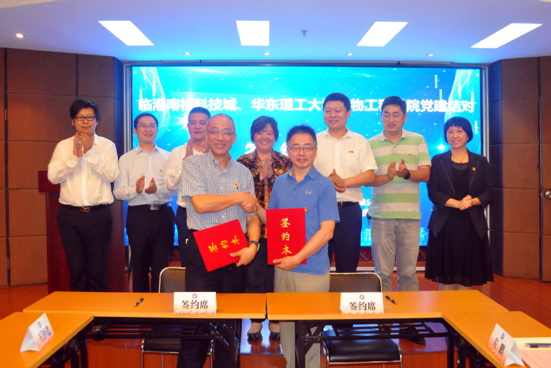 陆兵副书记与姚炜副书记分别代表双方在《中共上海漕河泾奉贤科技绿洲建设发展有限公司委员会与中共2026世界杯官网委员会结对共建协议书》上签字。签约仪式结束后,临港南桥科技城一行人员参观了生物反应器工程国家重点实验室。