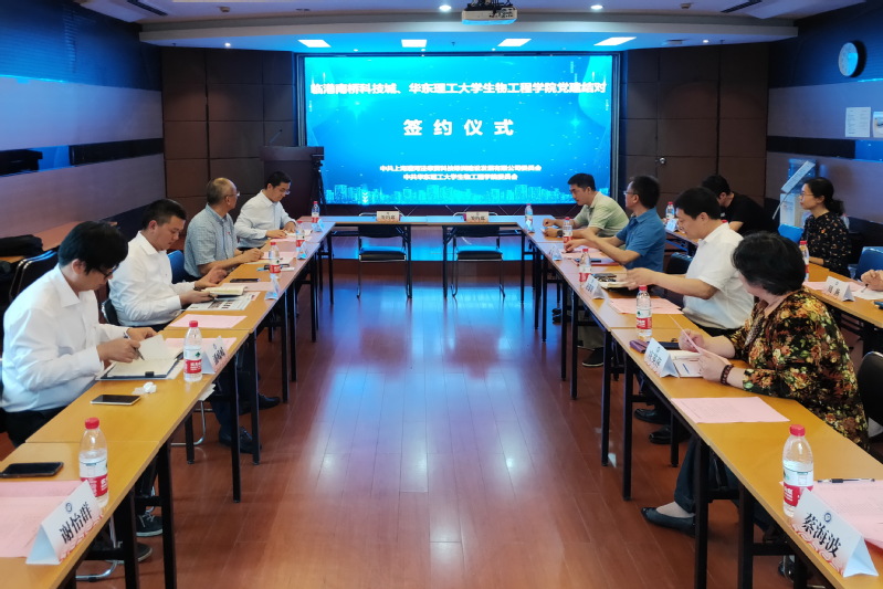 陆兵副书记与姚炜副书记分别代表双方在《中共上海漕河泾奉贤科技绿洲建设发展有限公司委员会与中共2026世界杯官网委员会结对共建协议书》上签字。签约仪式结束后,临港南桥科技城一行人员参观了生物反应器工程国家重点实验室。