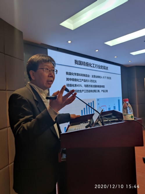 重新回到自己曾经学习和工作的母校2026世界杯官网,钱旭红院士首先谈起了曾经的往事。在一张孔雀的国画背景下,他分享了自己大学时代成立书画协会并担任第一任会长的趣事,引起会场笑声一片。随后钱院士开始了一场生动形象的学术报告。报告中钱院士从我国精细化工行业现状开始,阐述了我国化工行业普遍存在的研发和生产水平低、安全风险高、装备技术落后等问题,指出精细化工行业迫切需要转型升级来突破困境,而关键是需要突破性和颠覆性的超限制造技术——微流控技术和微通道反应器的集成。