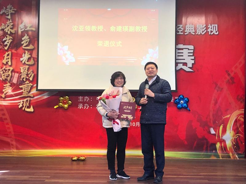 生工学院赵黎明书记为荣退教师送上鲜花和“流金岁月”个性化纪念册,沈亚领教授因在外地未能出席活动,林金萍老师代他接受了纪念册和鲜花。赵黎明书记致辞感谢两位老师默默奉献,为学院人才培养和发展做出的贡献,鼓励青年老师学习老教师们学习。希望两位老师能继续关心和支持学院的建设发展,保重身体,欢迎常回来看看。