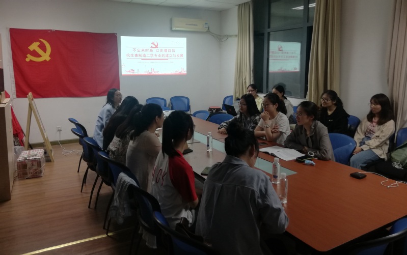 首先,国重室研究生第五党支部书记张雅敬以“不忘来时路, 以史增自信”为主题,围绕本校抗生素制造工学专业的建立与发展,向各位党员介绍了在党的领导下中国抗生素研究的艰辛历程,以及我院马誉瀓教授、俞俊棠教授、张嗣良教授等人为我国抗生素制造工学专业及生物工程专业的建立作出的里程碑式的贡献。她鼓励支部党员以史学为基,致力创新发展,树立科技报国的伟大理想,发挥党员的先锋模范带头作用,为国民大健康事业添砖加瓦。