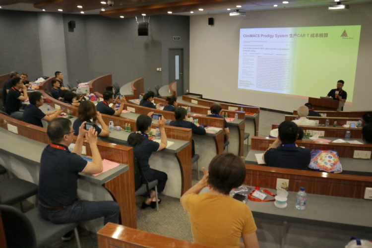 美天旎中国区高级经理刘建博士在活动中详细介绍了德国美天旎的企业文化、成长历史,更详细的介绍了”一站式细胞生产新模式”,着眼于为企业提供可靠的、快速的、经济的CAR-T细胞生产的新理念,极大的吸引了与会校友的兴趣。生工学院校友会理事长陆兵感谢美天旎在承办此次校友活动中给予的大力支持,并热情邀请刘建博士有机会要回母校为师弟师妹分享教科书以外的新技术,让在校生可以更快地适应产业界的需求。