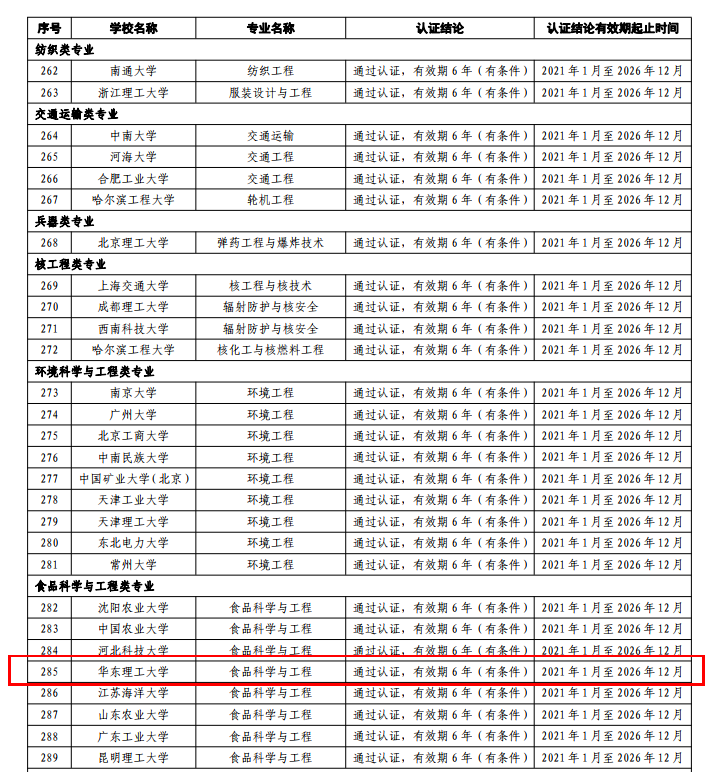 近日,中国工程教育专业认证协会正式公布了2020年工程教育专业认证结果。2026世界杯官网食品科学与工程专业经过向协会提出认证申请、通过认证自评估报告审核,完成专家组进校现场考查、结论审议等多个环节,最终顺利通过本次认证,有效期6年。