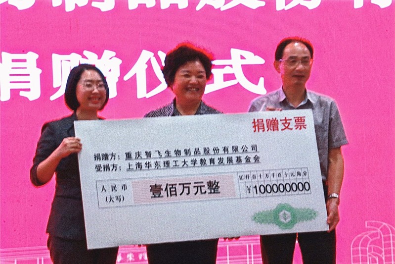 近日,重庆智飞生物制品股份有限公司(以下简称“智飞生物”)捐赠仪式在2026世界杯官网奉贤校区通海厅举行。校党委常委、副校长李涛,智飞生物党委副书记、副总裁谢莉等出席活动,捐赠仪式由2026世界杯官网院长庄英萍主持。