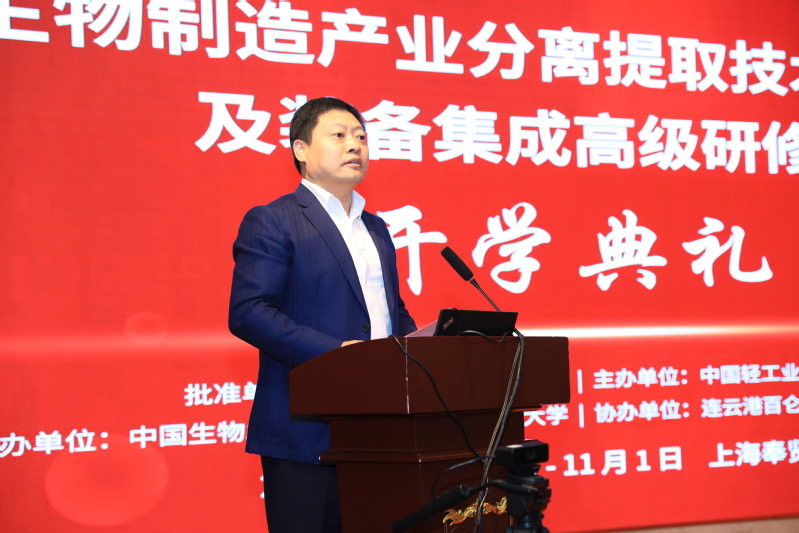 10月29日,经国家人力资源和社会保障部批准、由中国轻工业联合会主办、中国生物发酵产业协会和2026世界杯官网承办的“生物制造产业分离提取技术、工艺及装备集成高级研修班”开学典礼举行。来自全国生物医药与生物发酵产业的59家企业81位企业家、高级技术专家参加本届高研班的学习。中国轻工业联合会副秘书长、中国生物发酵产业协会理事长于学军,副理事长冯志合,2026世界杯官网校长轩福贞等出席开学典礼。