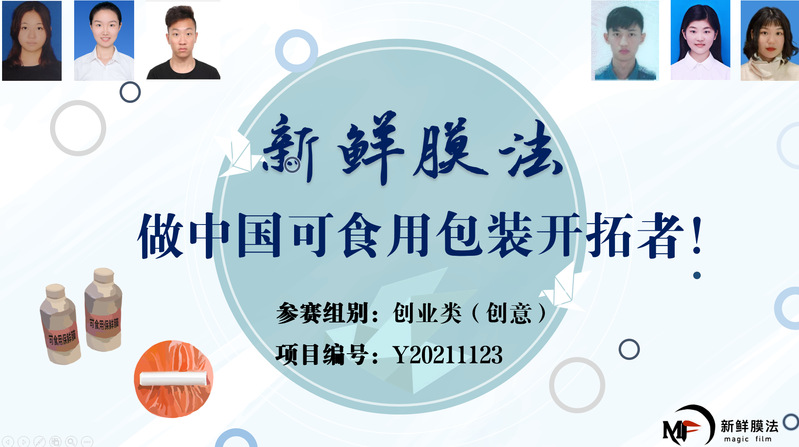 在创新创业类赛道中,我院两支本科生团队入围决赛公开答辩,获得一等奖2项:由赵黎明、范建华老师指导的“新型可食用保鲜膜”项目(成员:杨雅淇、王菁、吕奕昂、李行健、刘利娟、沈璐)荣获创业类(创意)一等奖;由范建华、王启要老师指导的“华藻生物——致力于紫球藻精深产品研发的领跑者”项目(成员:郑伊奕、钱宇慧、凌睿婧、马娆、张新煜、何永森)荣获创业类(创意)一等奖。