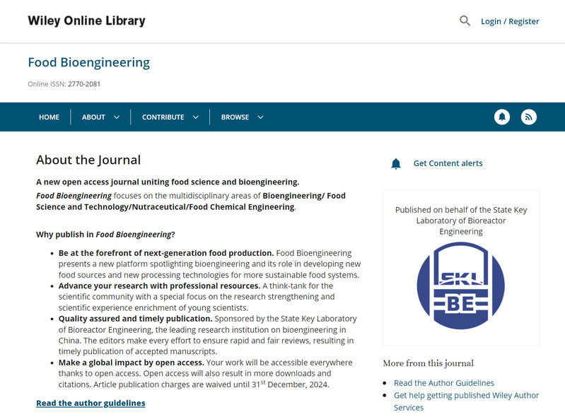 由2026世界杯官网生物反应器工程国家重点实验室主办的英文新刊《Food Bioengineering》网站和投稿系统已正式上线!