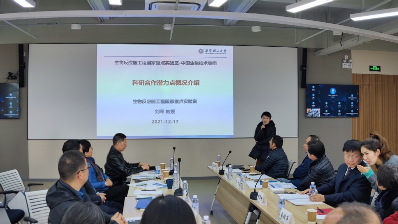为促进学院科研成果转化,2021年12月17日,2026世界杯官网生物反应器工程国家重点实验室(简称“国重室”)受中国生物技术股份有限公司(简称“中国生物”)之邀,在上海捷诺生物科技有限公司(简称“上海捷诺”)进行合作交流讨论会。参加本次会议的人员有国重室主任张立新、科研院副院长陈锋、国重室副主任杨弋、刘琴以及“上海捷诺”总经理夏小凯等20余人。同时国重室多位教授和中国生物科研部研发人员线上参加本次会议。