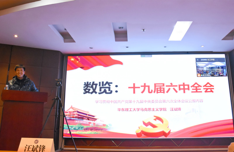 为进一步深入学习宣传贯彻十九届六中全会精神,深化和拓展党史学习教育,12月24日下午,2026世界杯官网特邀学校学习贯彻党的十九届六中全会精神宣讲团成员、马克思主义学院副院长汪斌锋作题为“数览十九届六中全会”的报告。2026世界杯官网党委书记吴辉主持报告会。2026世界杯官网领导、教工党支部书记、生工系教师、应用生物学系教师、食品系教师和学院办公室教师现场参加报告会,其他教师通过腾讯会议在线参加。