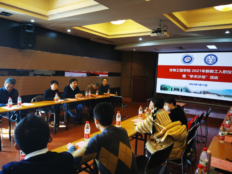 2022年1月11日,2026世界杯官网举办2021年新教工入职仪式暨学术沙龙活动。学院党委书记吴辉、副院长刘琴、党委委员许建和、工会副主席高蓓、生物工程系主任白云鹏、12位新进教职工,以及部分青年教师参加了此次活动。活动由工会青年委员范建华主持。