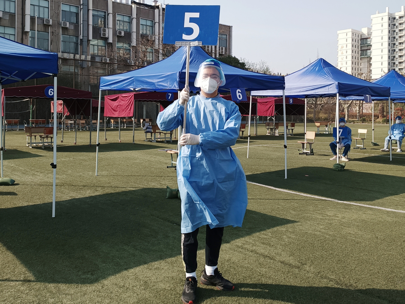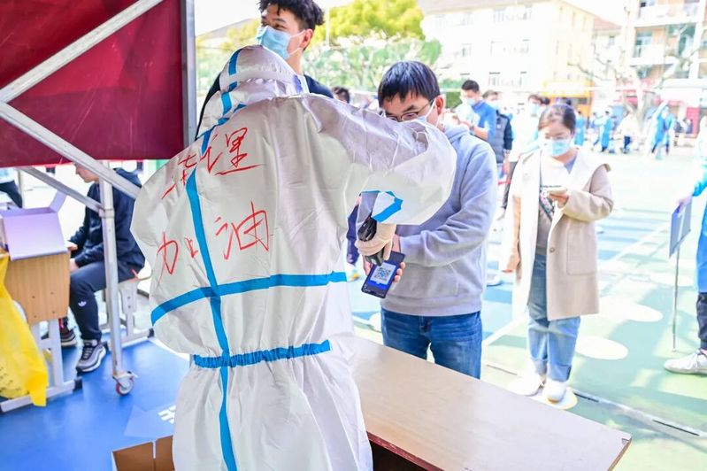 生工201李志豪同学就是其中的一员。“我的工作是维持秩序,‘请大家保持一米距离’、‘准备好登记码’、‘把手机亮度调高’。多亏同学们都非常配合,核酸检测工作进行得非常顺利。”李同学表示。疫情无情,校园有情,尽微薄之力,愿华理无恙!