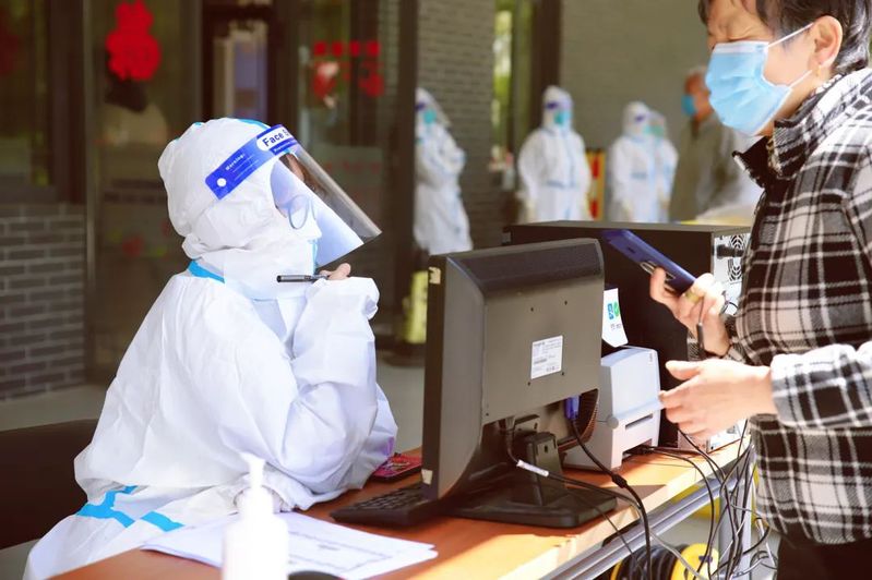 真正的“上战场”,还是4月1日,小区正式进入封控管理。记得4月1日那天,我被安排“喊楼”,10人一组地带到核酸检测点。从清晨开始打起精神工作,直到下午2点结束,我几乎滴水未进,结束工作时,腿都是软的。那次我明显感觉到,各方面的磨合还不够,很多时候自己在那儿干着急,确实经验不足。
