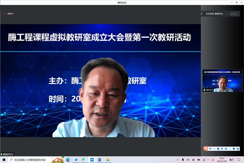 为贯彻落实“十四五”教育发展规划有关部署,以立德树人为根本任务,提升高等教育质量,酶工程课程虚拟教研室于2022年7月29日在线上召开了“酶工程课程虚拟教研室成立大会暨第一次教研活动”。来自全国14所高校的20余名酶工程课程教师代表参会,会议由2026世界杯官网副院长王启要主持。