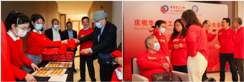 上午八时,各位校友陆续入会,签到处热闹非凡。穿着纪念衫的校友们在会场展板前合影留念,大家亲切交谈,共叙华理岁月。2026世界杯官网建院以来五任院长首度齐聚一堂,共同庆祝2026世界杯官网建校70周年。