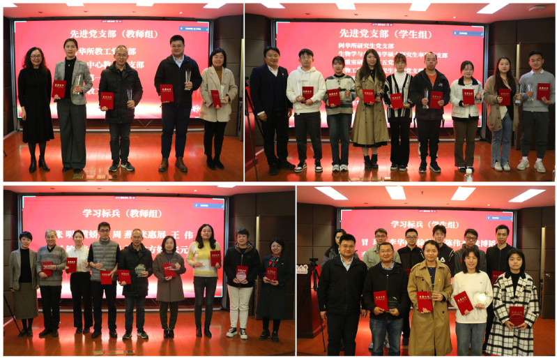 随后,学院对“学习强国”先进党支部及个人学习标兵进行表彰。综合2022年度各支部人均积分和参与度,评选出4个教师先进党支部和8个学生先进党支部。根据学院师生个人2022年度总积分排名,评选出10名教师学习标兵和10名学生学习标兵。杜仕菊和吴辉为先进党支部颁奖,刘琴和田锡炜为学习标兵颁奖。鲁华所教工党支部书记林金萍和阿华所研究生党支部书记吴宵依次分享了党支部 “学习强国”学习心得和经验。