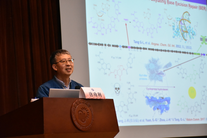 唐功利研究员以人类面对的生物耐药性这一重大考验为出发点,分享了微生物自抗机制的新颖途径、分泌性氧化酶介导的、罕见的细胞外氧化药效团再生-过氧化失活的自抗性机制、微生物中除识别甲基化碱基之外的YTM-alkylating Base Excision Repair (BER) DNA损伤后修复。此外,唐功利研究员团队还对基因簇中未知功能基因进行深入分析,推测其基因簇中编码了四个DNA糖基化酶TXNU2/U4和LIDU5/U1参与BER介导的自抗性。
