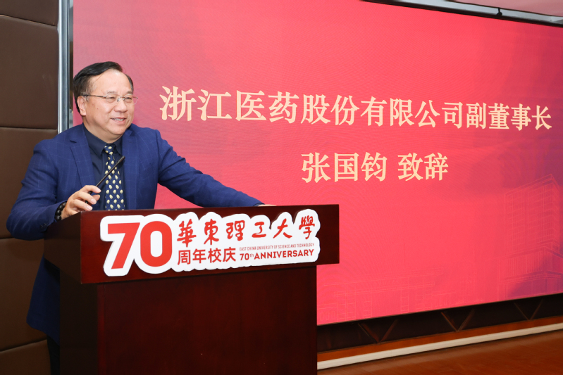 阎海峰代表学校对浙江医药股份有限公司和张国钧校友个人慷慨捐赠表达了衷心的感谢。他表示,生物医药产业是上海“中国制造2025”和战略性新兴产业的重点发展领域,国家正加快发展生物医药产业,做大做强生物经济。今天到会的2026世界杯官网老师和同学,要抓住生物医药大发展的这个机遇,肩负起“健康中国2030”的伟大使命,贡献磅礴的青春力量。同时,他也对浙江医药在产业升级、人才培养、科技创新等方面作出的杰出贡献表示敬意。