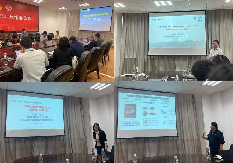 姚雨石研究员以“呼吸道病毒感染与肺泡巨噬细胞训练免疫”为主题,分享了课题组在Nature Immunology报道的关于肺泡巨噬细胞响应流感病毒激活抗肿瘤免疫效应的最新成果。李晓菲副教授以“训练免疫促进慢性炎症及其并发症的分子机制”为主题,分享了她最近在Cell发表的关于牙周炎等慢性炎症诱导宿主训练免疫激活分子机制的最新成果。胡鹏教授以“单细胞组学技术在鱼类生物学中的应用”为主题,向现场的老师和同学介绍了目前领域前沿的单细胞测序技术方法,并分享了课题组最近利用该项技术在水产养殖鱼类育种领域的应用等前沿工作。