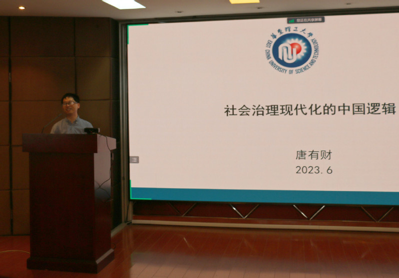 唐有财从市场、社会和国家3个维度阐释了社会治理的重要性,系统介绍了中国社会治理的转型与变迁,重点讲解了新中国成立以来的社会治理经历的4个重要发展阶段。他通过翔实的内容和生动的案例,展示了党的十八大以来各地社会治理创新实践。随后,唐有财带领学院教师一起学习了习近平总书记在中央政治局第五次集体学习时重要讲话精神,结合研究实际,分享了对习近平总书记有关教育强国讲话的学习体会,强调要从服务中国式现代化事业、创新科研组织方式、注重三个结合、注重四大方向等方面,为推进教育现代化、实现教育强国目标贡献华理力量。