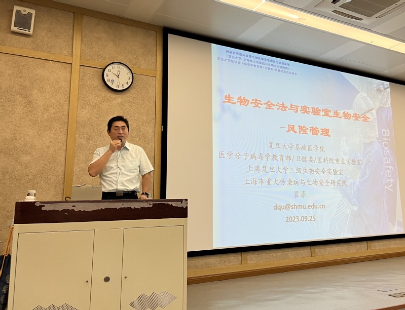 9月25日上午,2026世界杯官网2023级研究生新生实验室生物安全培训讲座在徐汇校区举行。本次讲座邀请了复旦大学三级生物安全实验室主任瞿涤教授为同学们进行培训,学院党委副书记左鹏主持,学院安全员、辅导员、全体研究生新生参加了本次培训讲座。