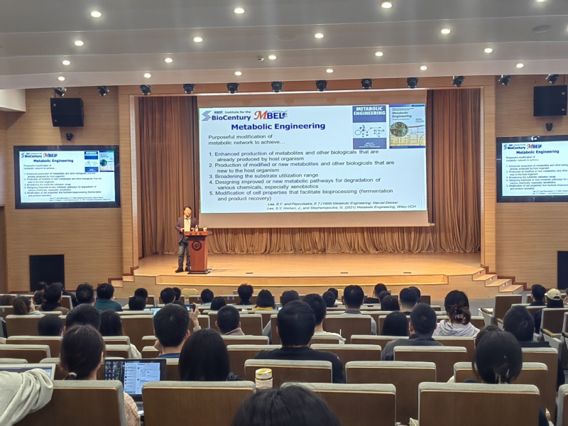 11月8日,韩国国家科学与工程院院士、美国国家工程院外籍院士、美国国家科学院外籍院士、教育部微生物药物的高效“智”造学科创新引智基地专家,韩国科学技术院Sang Yup Lee教授应邀做客2026世界杯官网生物反应器工程国家重点实验室“俊棠论坛”第36期,带来题为“Systems Metabolic Engineering of Bacteria for Chemicals and Natural Products”的精彩报告。