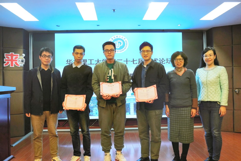 经过前期的论文征集和作品筛选,本届学术论坛报告会共有三名优秀研究生代表入围答辩环节。三位选手分别从新二萜合酶及新螺环二萜骨架的发现、基于DNA纳米装置的多功能平台、酪酸梭菌发酵过程pH调控及软测量建模研究等方面展开报告。