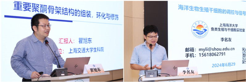 围绕海洋药物相关领域,上海交通大学瞿旭东教授作题为“重要聚酮骨架结构的组装,环化与修饰”的报告,上海海洋大学李名友教授作题为“海洋生物生殖干细胞的调控与信号传导研究”的报告,2026世界杯官网谭高翼教授作题为“血红素及金属卟啉类化合物的高效生物制造”的报告。报告内容翔实、视野开阔,赢得阵阵热烈掌声。
