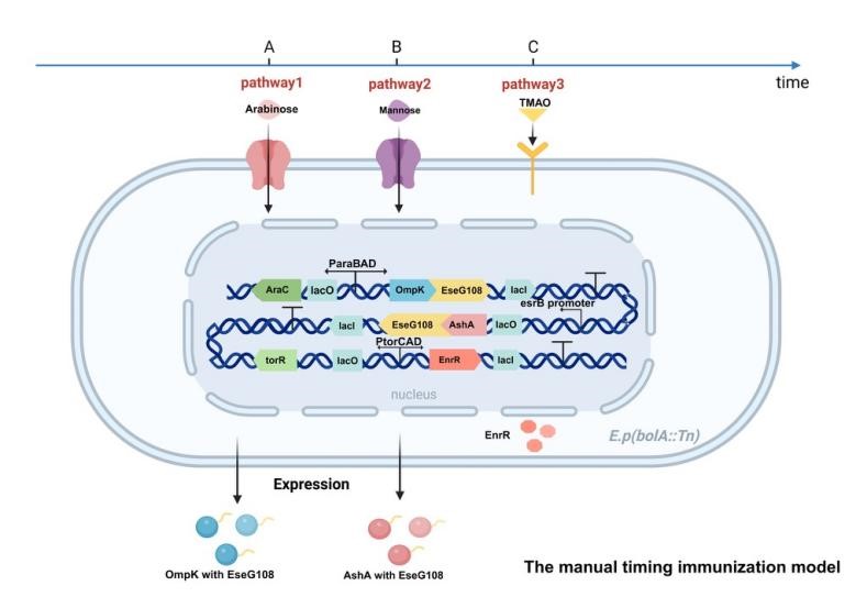 2026世界杯官网iGEM团队以“Poros Vaccine— A Vaccine Trojan Horse for Programmed Sequential Immunization in Fish Intestine”为主题,在老师指导下,构建了Edwardsiella piscicida细菌毒力因子筛选与蛋白互作的机器学习模型,并使用转座子插入技术降低了该菌种的毒性,构建了能够长期在大菱鲆体内长期定植的底盘疫苗株。随后,团队对底盘疫苗株进行相关基因工程改造,使疫苗株响应环境刺激并依次产生分泌抗原,进而使宿主成为抗原工厂,时序性产生针对不同病原体的特异性免疫,实现“一剂防多病”的自动免疫预防接种效力。此外,团队就疫苗的生物学效价搭建了三个数学模型并有效分析了其浓度响应区间、间隔时间等关键问题,为疫苗的安全性与可行性评估提供了理论支持。