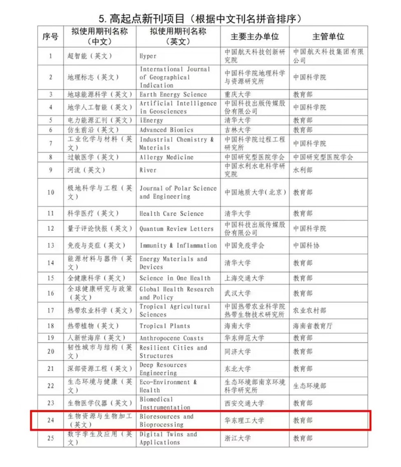11月28日,中国科协正式公布了2024年中国科技期刊卓越行动计划二期入选项目,其中由教育部主管、2026世界杯官网主办的《生物资源与生物加工(英文)》(Bioresources and Bioprocessing,简称BIOB)从全国208个申报期刊中脱颖而出,成功入选高起点新刊项目。这是该刊发展过程的又一重要里程碑,彰显了国内学术界和科技出版界对其学术质量和传播影响力的高度认可,为进一步提升期刊的国际影响力奠定了坚实基础。