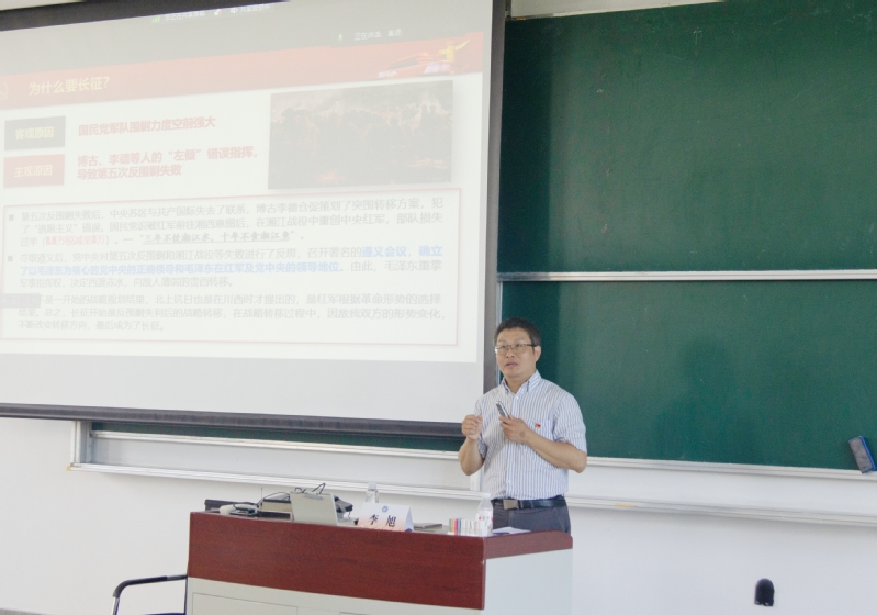 李旭以恢弘的历史视野展开讲述。他带领同学们重温红军长征的艰苦卓绝与战略壮举,通过详实史料勾勒出这场决定中国革命命运的生死征程,通过分析长征主要部队的作战路线与历史贡献,生动展现了多路红军在危机中相互策应、向死而生的壮烈史诗。他强调,长征不仅是战略转移的胜利,更是一次理想信念的伟大远征和精神血脉的深刻锻造。他指出:新时代的“长征路”上,青年学子更需赓续红色基因,将长征精神内化为攻坚克难的行动自觉,在科研报国、服务人民的实践中校准人生航向。