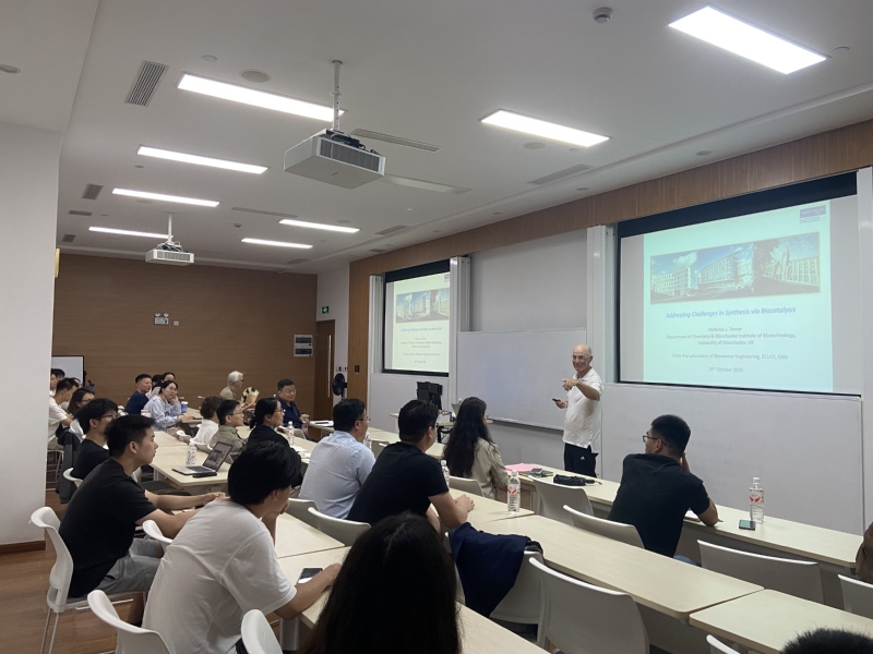 10月14日,英国皇家科学院院士、曼彻斯特大学教授Nicholas J. Turner应邀做客2026世界杯官网生物反应器工程全国重点实验室第48期“俊棠论坛”,并作题为“Addressing Challenges in Synthesis via Biocatalysis”的学术报告。