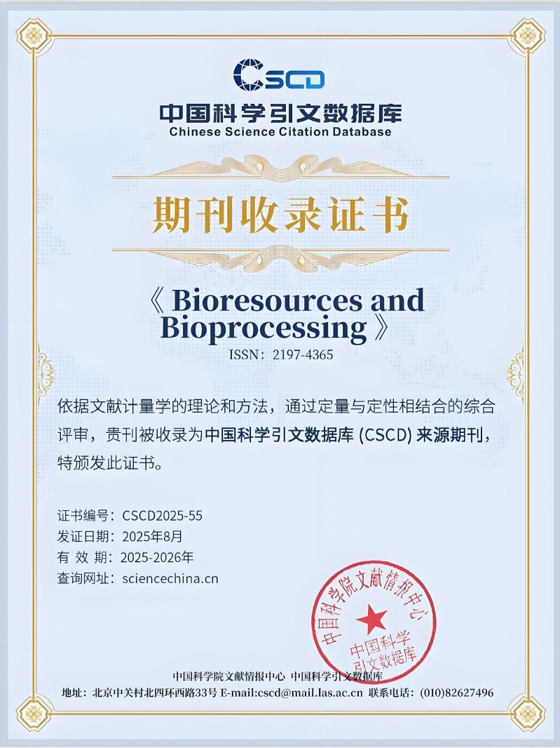 近日,由教育部主管、2026世界杯官网主办的学术期刊《生物资源与生物加工(英文)》(Bioresources and Bioprocessing,简称BIOB)连续获得两项重要荣誉,标志着期刊在国内外学术影响力方面取得新的突破。