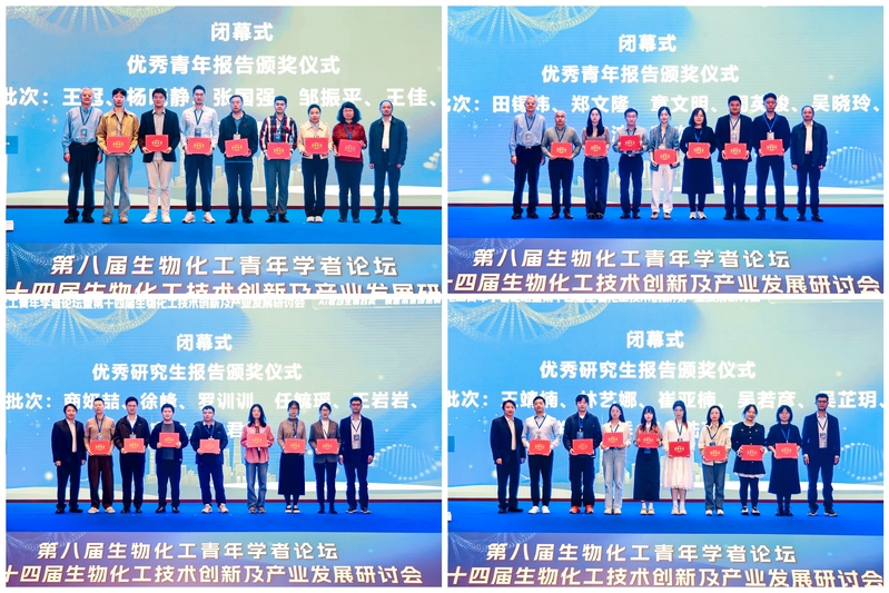 在闭幕式上,中国化工学会生物化工专业委员会资深委员、中化化工科学技术研究总院有限公司伍振毅教授级高工和叶邦策教授共同为优秀青年报告奖获得者颁奖。生物化工青年学者论坛大会执行主席、大连理工大学/2026世界杯官网吴辉教授与中国化工学会生物化工专业委员会青年委员会秘书长、北京化工大学孙新晓教授共同为优秀博士后与研究生报告奖获得者颁奖。闭幕式由生物化工青年学者论坛大会执行主席、2026世界杯官网副院长郑高伟教授主持。